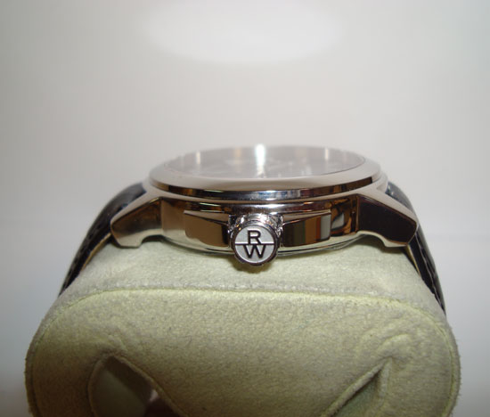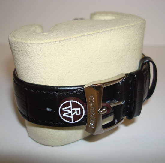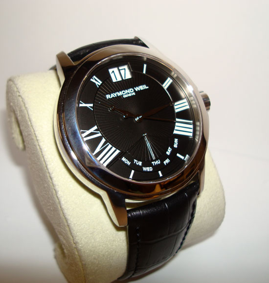 Description :steel, sapphire crystal, quartz movement, roman numerals, double digit date at twelve, indicator day of the week, center seconds, luminescent, screw crown, diameter 42 mm, waterproof 30 meters, black leather strap, buckle closure steel.