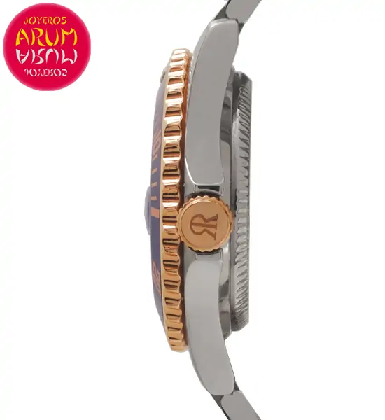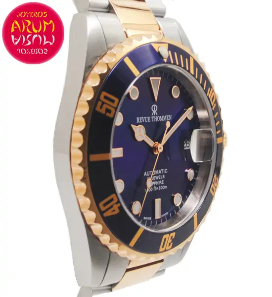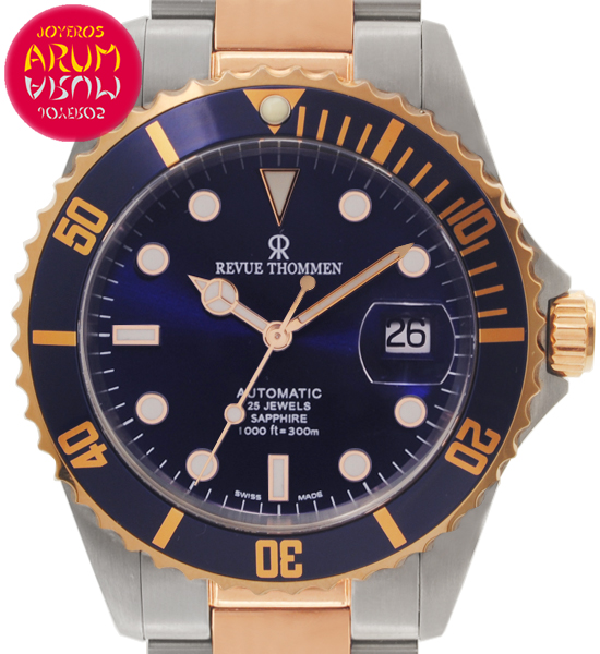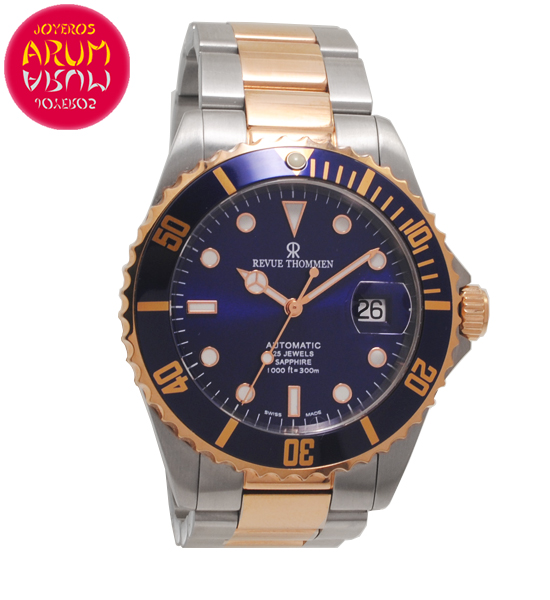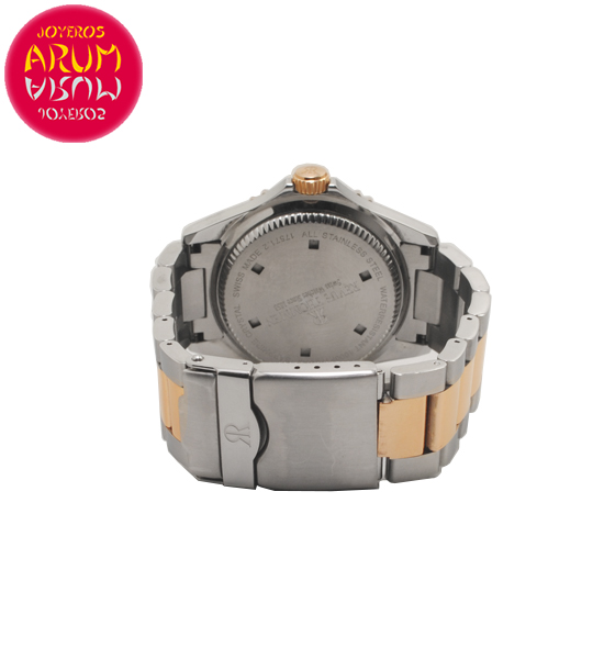 Other specifications :steel and rose gold plated steel, calibre ETA 2824, date at three, central seconds, rotating bezel, screw crown.