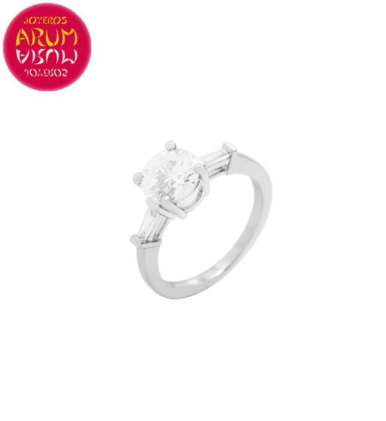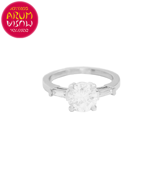 Description: White Gold 18K Ring with Diamond 1.03 cts. (E-VS2) and two Baguettes 0.197 ct (H-VS1).