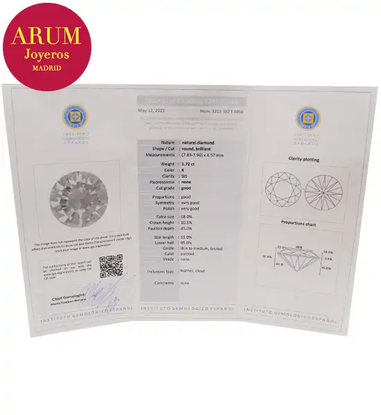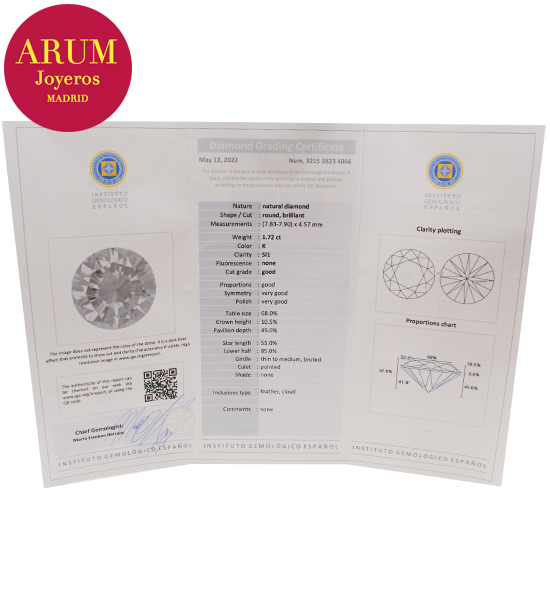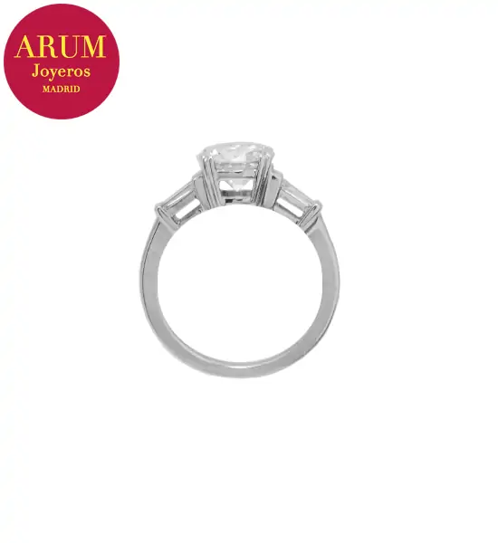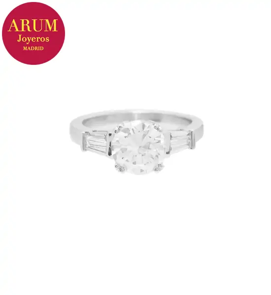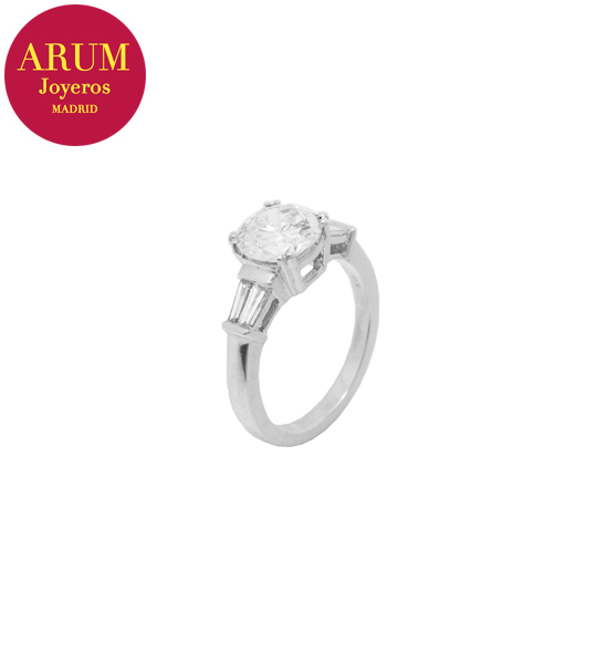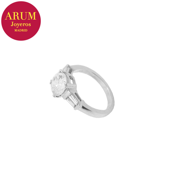 Description: White Gold 18K Ring with Diamond 1.72 cts. (K-SI1) and four baguettes 0.31 ct (H-VS1).