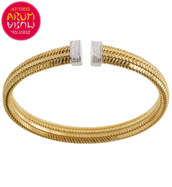 Description: Italian jewelry Roberto Coin bracelet, made in 18K yellow gold, with diamonds and 18K white gold, signed with a small ruby. The size are 57, 49 mm.