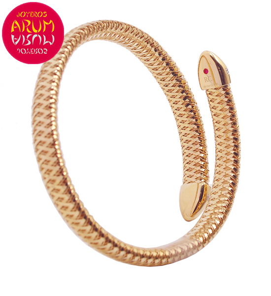 Description: Italian jewelry Roberto Coin bracelet, made in 18K rose gold, decorated with diamonds and signed with a small ruby. The diameter are 55 mm.