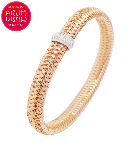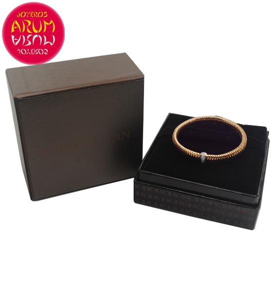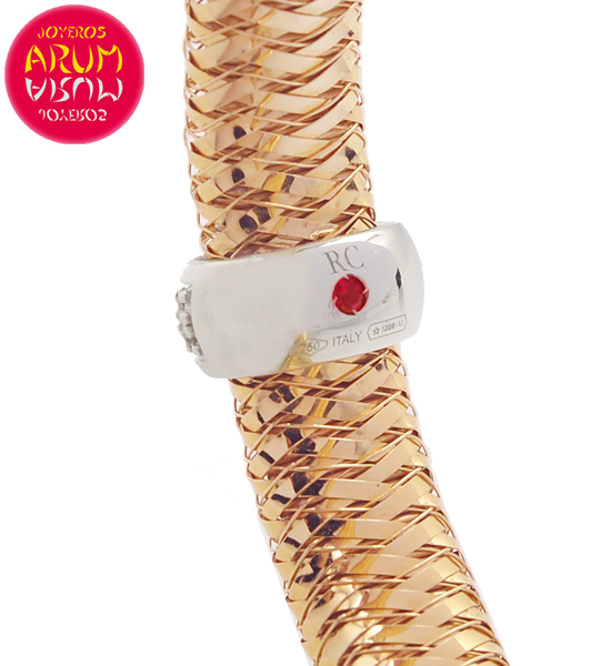 Description: Italian jewelry Roberto Coin bracelet, made in 18K rose gold, decorated with diamonds and signed with a small ruby. The diameter are 56 mm.