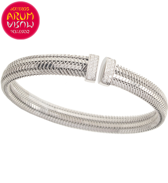 Description: Italian jewelry Roberto Coin bracelet, made in 18K white gold with diamonds, and signed with a small ruby. The diameter are 58 mm.