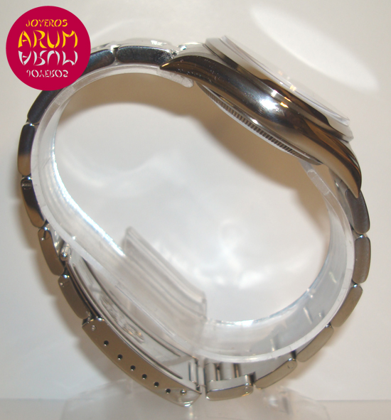 Description :steel, white dial, smooth bezel, sapphire crystal, automatic movement, center seconds, luminiscence indicators, screw crown, diameter 34 mm, waterproof 30 meters, steel strap, folding clasp.
