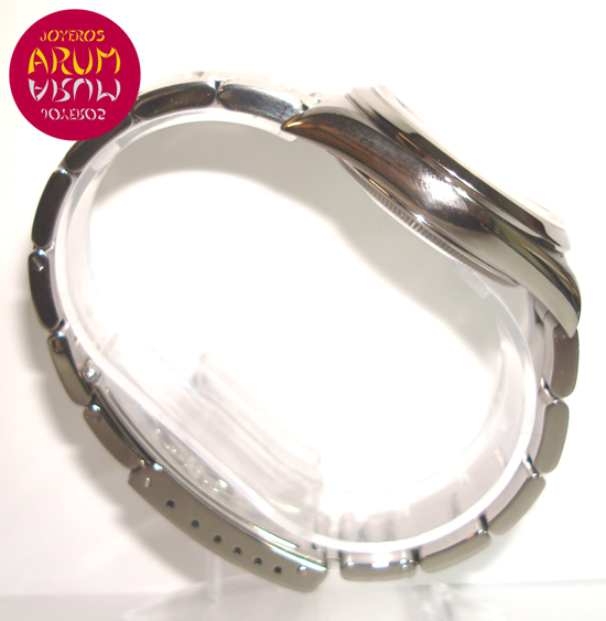 Description :steel, white dial, smooth bezel, sapphire crystal, automatic movement, center seconds, luminiscence indicators, screw crown, diameter 34 mm, waterproof 30 meters, steel strap, folding clasp, year 1996.