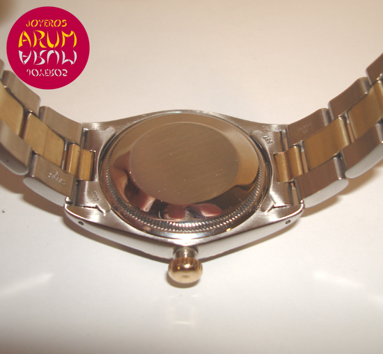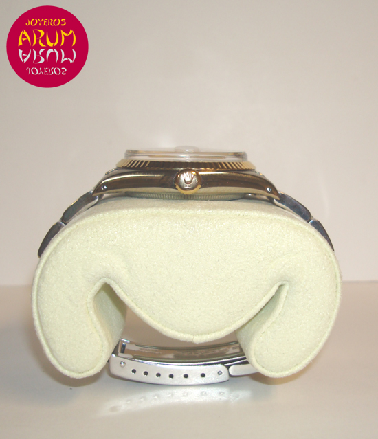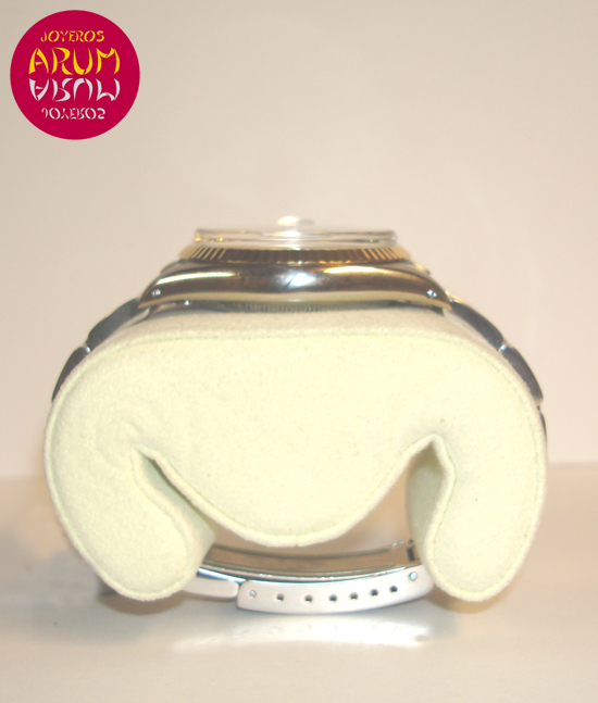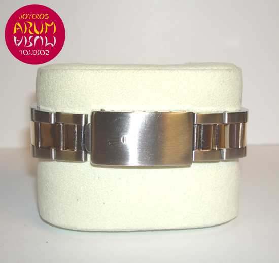 Description :steel and yellow gold, fluted bezel, automatic movement, plastic crystal, center seconds, luminescent handles indicators, date at three, magnifying glass on date, screw crown, diameter 34 mm, steel and yellow gold strap, folding clasp
