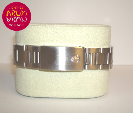 Description :steel, white dial with roman numerals, smooth bezel, plastic glass, automatic movement, central second, date at three, magnifying glass on date, handles with luminescent indicators, screw crown, diameter 34 mm, steel strap, folding clasp.