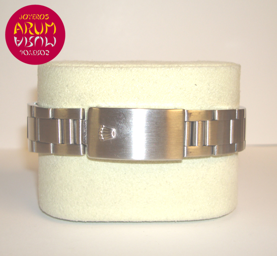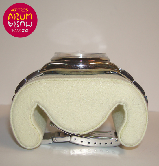 Description :steel, blue dial, smooth bezel, plastic glass, automatic movement, central second, date at three, magnifying glass on date, handles with luminescent indicators, screw crown, diameter 34 mm, steel strap, folding clasp.