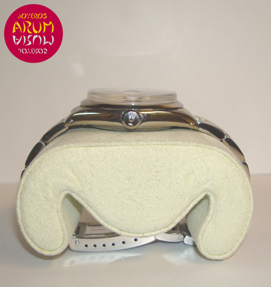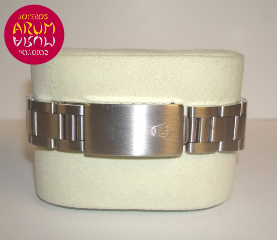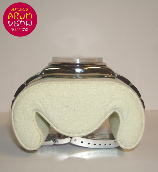 Description :steel, grey dial with roman numbers, smooth bezel, plastic glass, automatic movement, central second, date at three, magnifying glass on date, handles with luminescent indicators, screw crown, diameter 34 mm, steel strap, folding clasp.