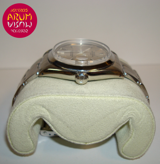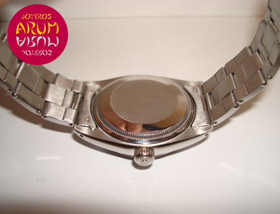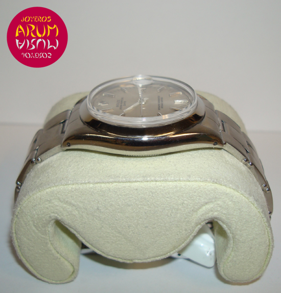 Description :steel, grey dial, plastic glass, automatic movement, center seconds, dial and handles with luminescent indicators, date at three, magnifying glass on date, screw crown, diameter 34 mm, steel strap, folding clasp.