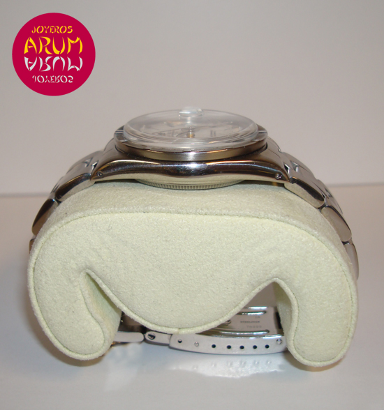 Description :steel, white dial with Roman numerals, fluted bezel, glass, plexiglas, automatic movement, center seconds, luminescent handles indicators, date with magnifier at three, screw crown, diameter 33.5 mm, steel strap, steel folding clasp .