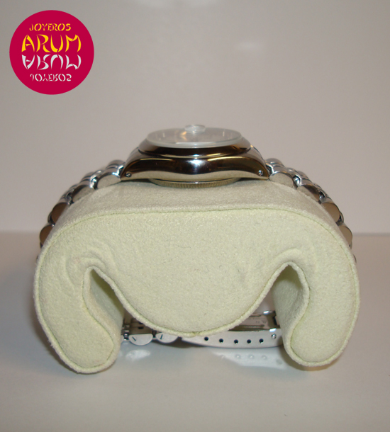 Description :lady’s watch, steel, smooth bezel, white dial, sapphire crystal, automatic movement, central second, date with magnifying glass at three, screw crown, diameter 26 mm, waterproof 30 meters, steel bracelet, folding clasp.