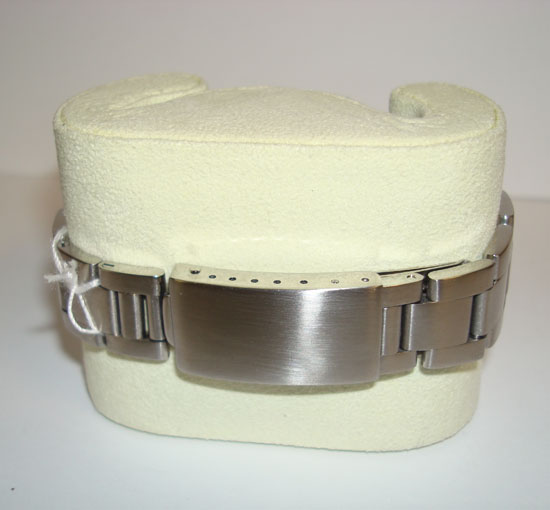 Description :steel, grey area, plastic crystal, automatic movement, center seconds, luminescent handles and dial, center seconds, date at three o’clock, date magnifier, diameter 34 mm, screw crown, steel strap, steel folding clasp .