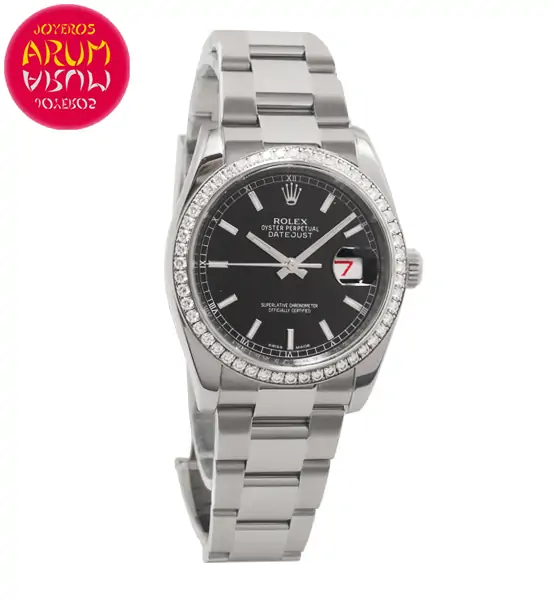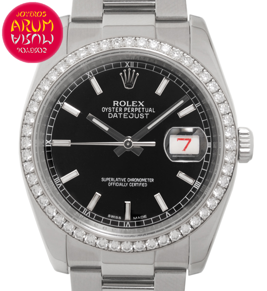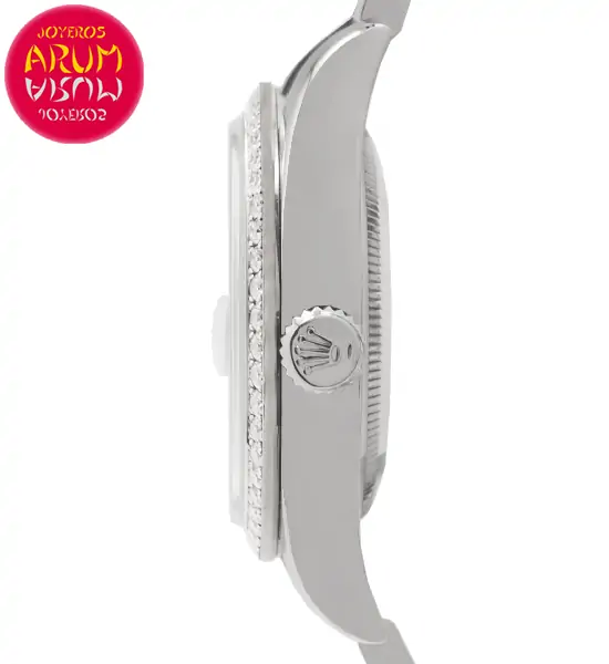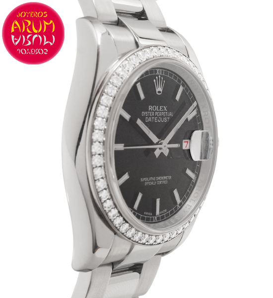 Other specifications :18K white gold bezel with 52 diamonds, date at three, central seconds, luminous marks, safety ring with serial number, screw crown.