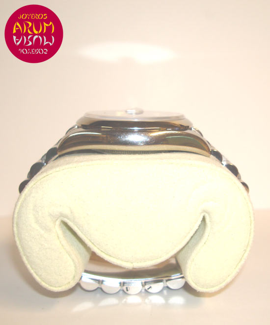 Description :steel, silver dial, smooth bezel, sapphire crystal, automatic movement, center seconds, luminiscent dial and handles indicators, date with magnifying glass at three, screw crown, diameter 36 mm, waterproof 100 meters, steel bracelet, folding clasp steel, year 2007.