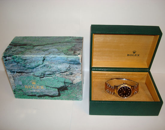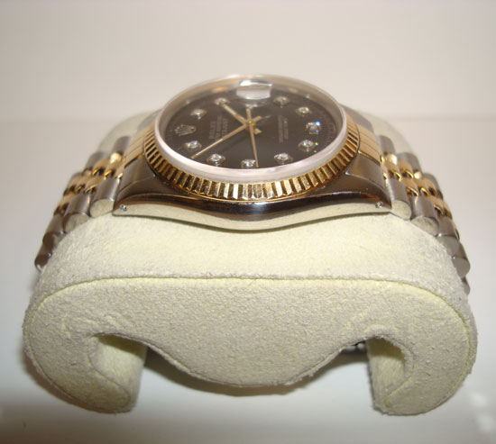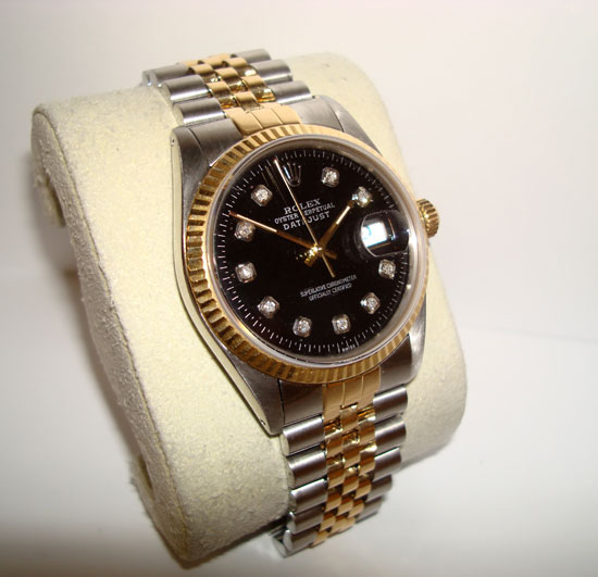 Description :steel and yellow gold, black dial with brilliants, fluted bezel, sapphire crystal, automatic movement, center seconds, luminescent handles indicators, date at three, magnifier date, screw crown, diameter 35 mm, steel and gold strap, folding clasp.