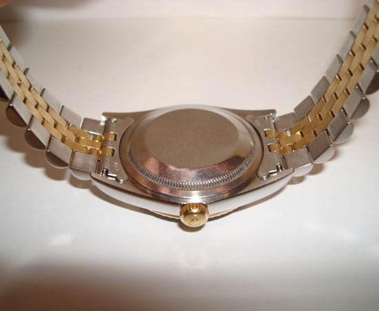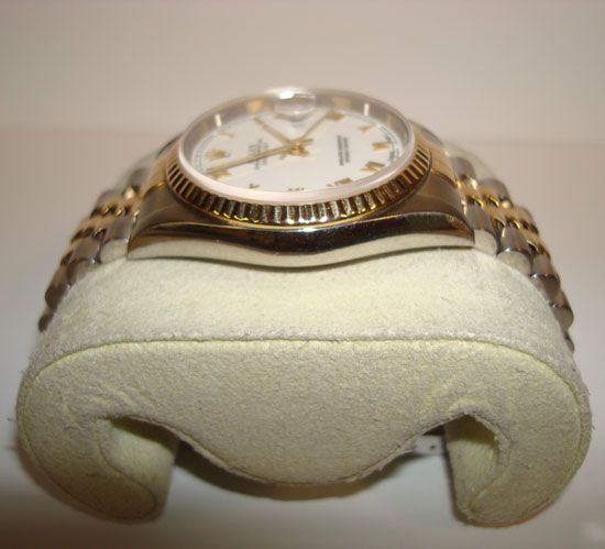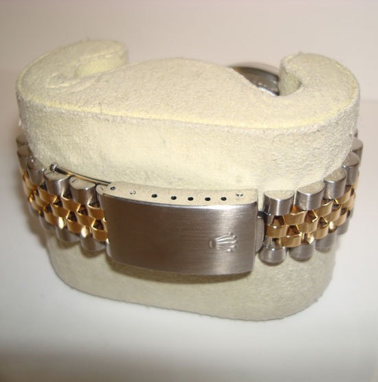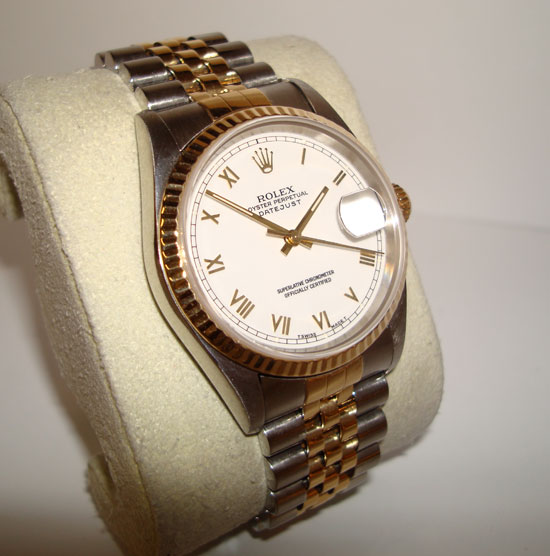Description :steel and yellow gold, white dial with roman numerals, fluted bezel, sapphire crystal, automatic movement, center seconds, luminescent handles indicators, date at three, magnifier date, screw crown, diameter 35 mm, steel and gold strap, folding clasp.