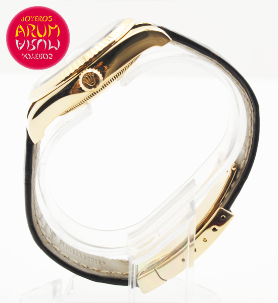 Other specifications :fluted bezel, date at three, central seconds, safety ring with serial number, luminiscence marks, screw crown, 18K gold folding clasp, original strap and deployant Rolex. Year 2003.