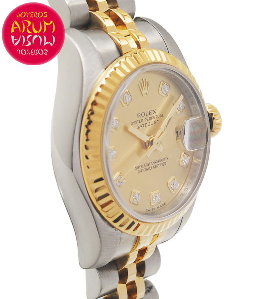Other specifications :18K gold and steel, dial with diamonds, date at three, central seconds, fluted bezel, safety ring with serian number, screw crown. Year 2007.