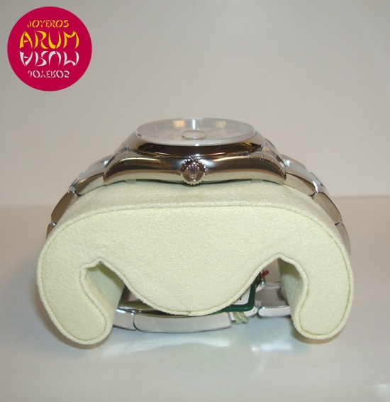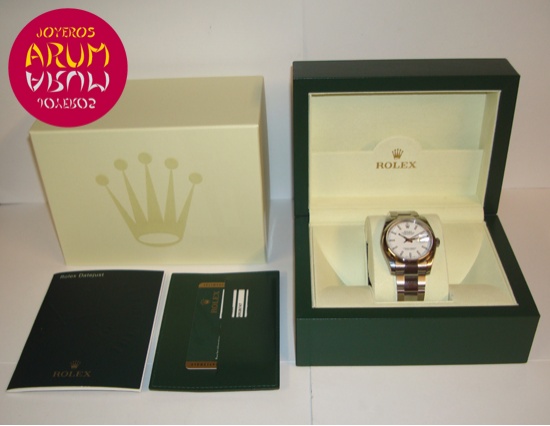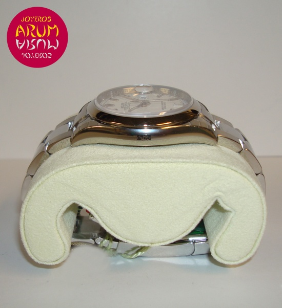 Description :steel, white dial, smooth bezel, sapphire crystal, automatic movement, center seconds, luminiscent dial and handles indicators, date with magnifying glass at three, screw crown, diameter 36 mm, waterproof 100 meters, steel bracelet, folding clasp steel.