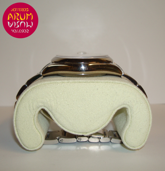 Description :white gold, white dial, smooth bezel, sapphire crystal, automatic movement, central second, handles and dial with luminescent indicators, date at three, magnifying glass on date, day of the week at twelve, screw crown, diameter 36 mm, waterproof 100 meters, white gold strap, hidden clasp.