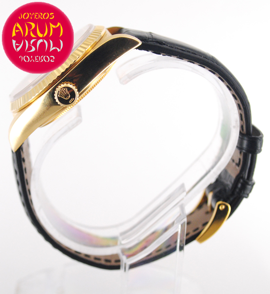 Other specifications :fluted bezel, central seconds, date at three, day at twelve, luminiscence handles, screw crown, original Rolex strap, original Rolex 18K gold buckle.