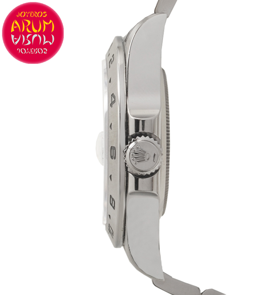 Other specifications :bezel with 24 hour scale, GMT (second time zone), date at three, central seconds, luminous handles, screw crown. Year 2019.