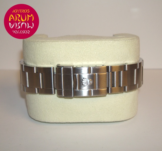 Description :steel, black dial, sapphire crystal, automatic movement, GMT function (auxiliary handle that indicates a second time zone), graduated fixed bezel with 24 hour scale (nocturnal or diurnal), center seconds , luminescent dial and handles, date with magnifier at three, diameter 40 mm, screw crown, waterproof 100 meters, steel strap, steel folding clasp, year 2006.