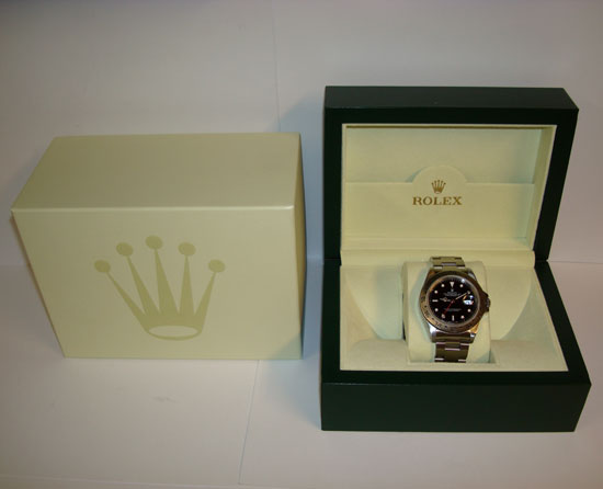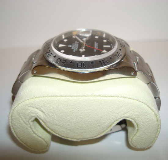 Description :steel, sapphire crystal, black dial, 24 hour fixed bezel, center seconds, automatic movement, hand for a second time zone, date, magnifying glass on date, luminescence, diameter 40 mm, screw crown, waterproof 100 meters, steel belt, oyster folding clasp.