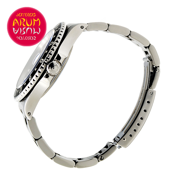 Other specifications :GMT function (second time zone), rotating bezel with 24 h scale, date at three, central seconds, luminiscence, screw crown, year 1989.