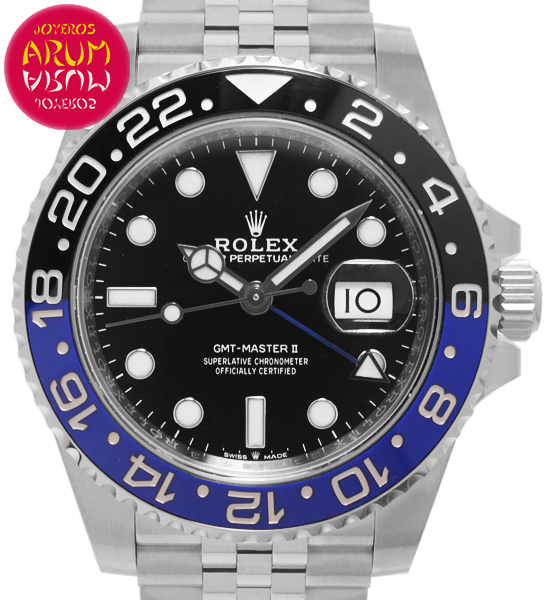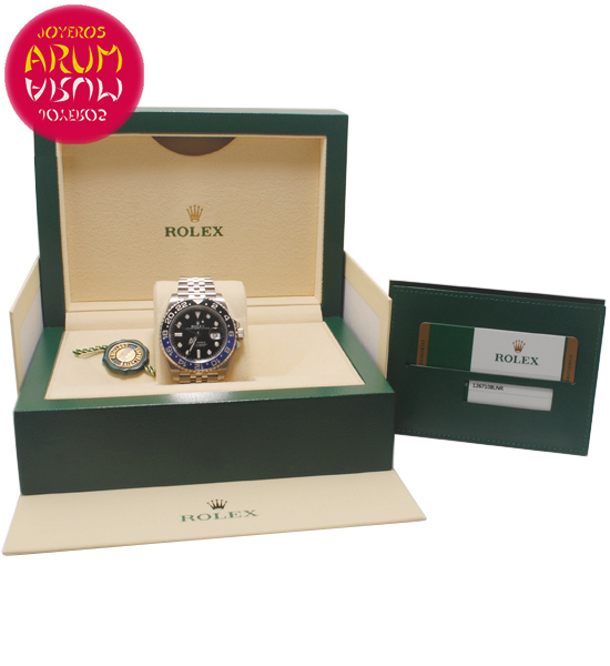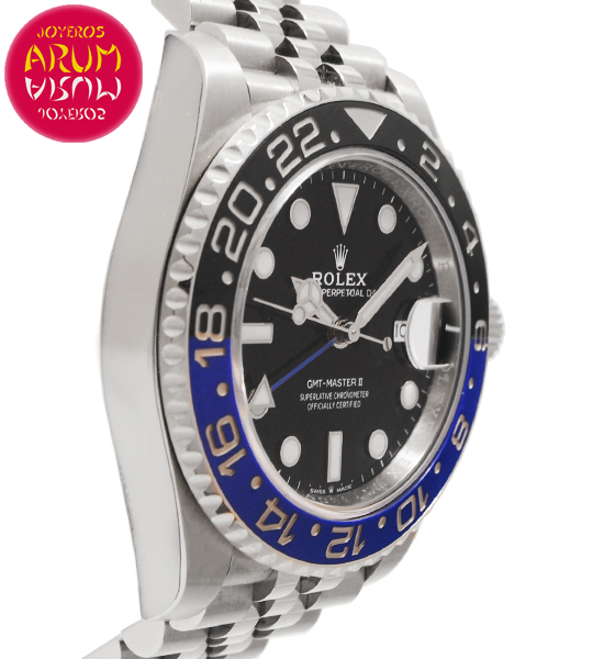 Other specifications :ceramic rotating bezel, GMT (second time zone), date at three, central seconds, screw crown, luminous marks, safety ring with serial number. Year 2020.