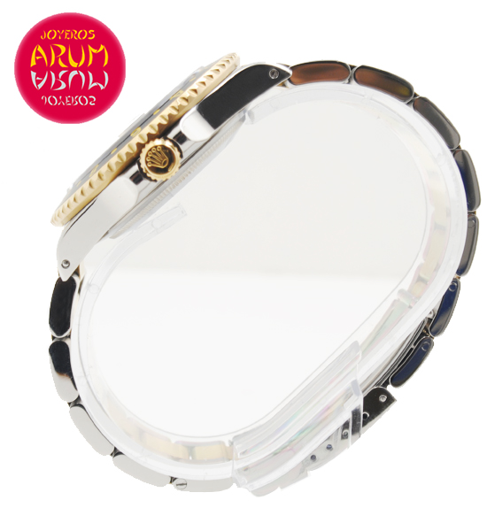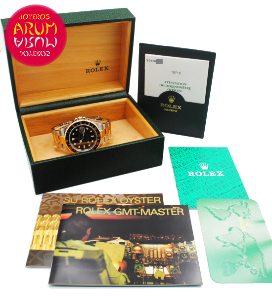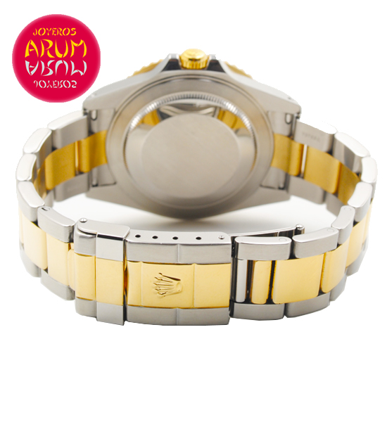 Other specifications :rotating bezel with 24 hour scale, GMT (second time zone), date at three, central seconds, screw crown, luminiscence marks, all links in steel and 18K gold. Year 2002.