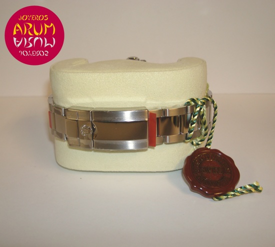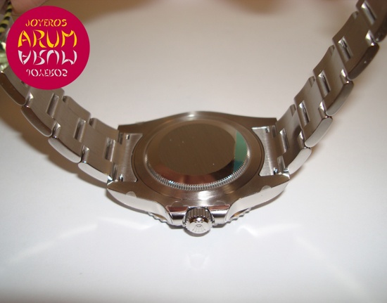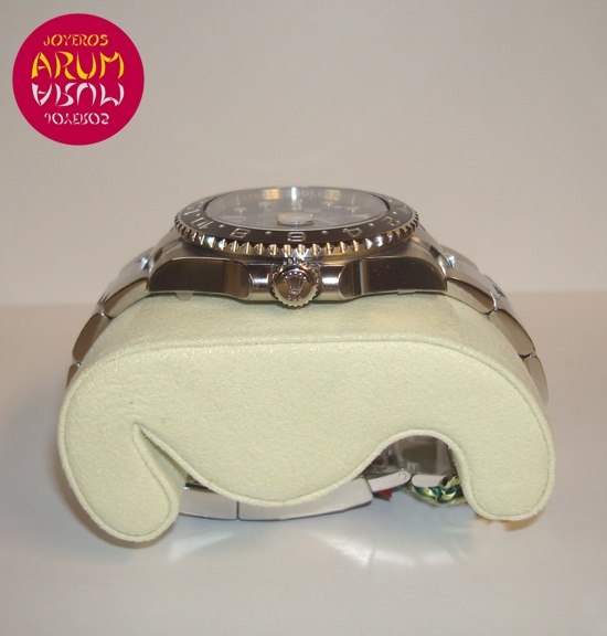 Description :steel, black dial, ceramic bezel, sapphire crystal, automatic movement, central seconds, handles and luminescent dial, date with magnifying glass at three, GMT function (second time zone), screw crown, diameter 40 mm, waterproof 100 meters, steel strap, steel folding clasp.