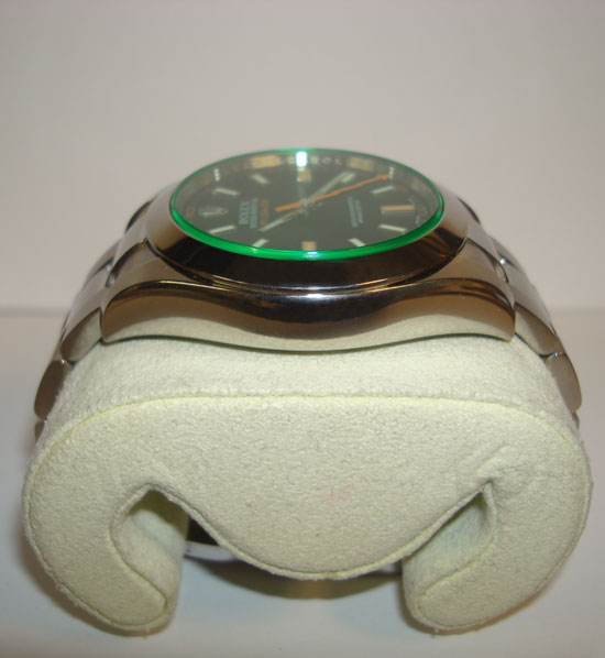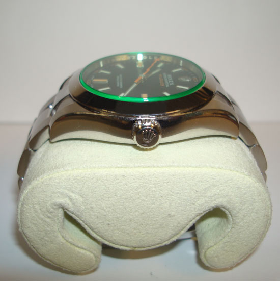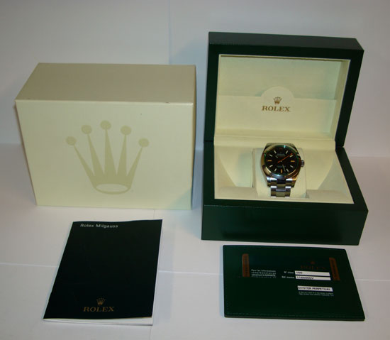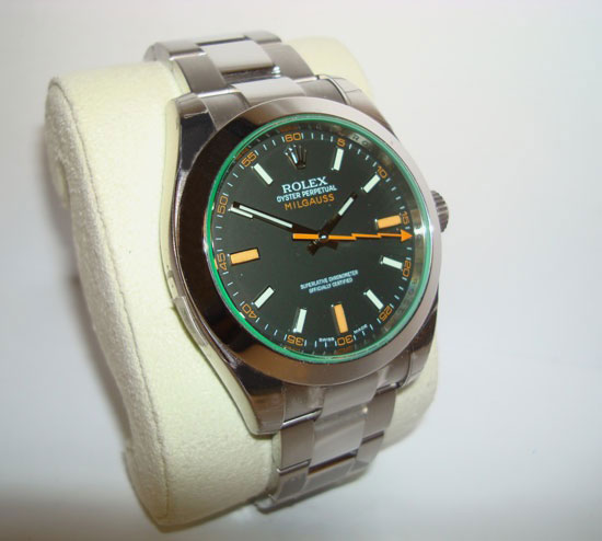 Description :steel, smooth bezel, black dial with dial, sapphire crystal, automatic movement, handles and luminescent dial, center seconds, screw crown, diameter 40 mm, waterproof 100 meters, resist a magnetic flux density to 1000 gauss, steel strap, folding clasp easyLink, year 2009.