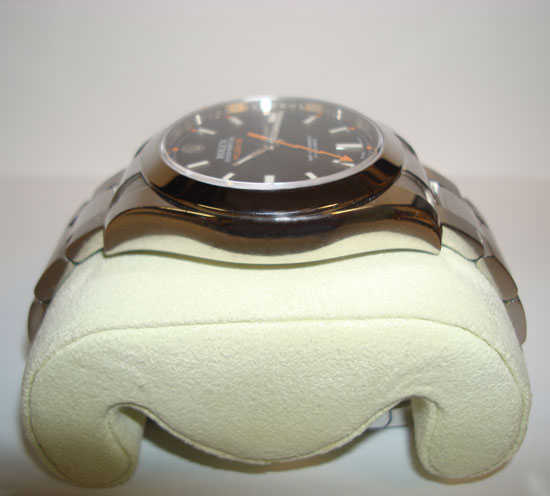 Description :steel, sapphire crystal, automatic movement, center seconds, smooth bezel, screw crown, luminescence dial and handles, diameter 40 mm, resist magnetic flux density of 1,000 gauss (0,1 Tesla), steel strap, folding clasp oyster.