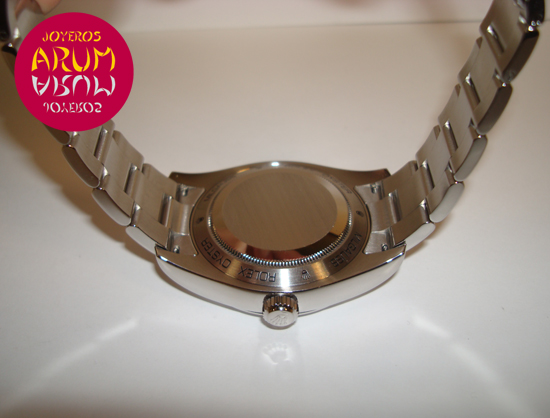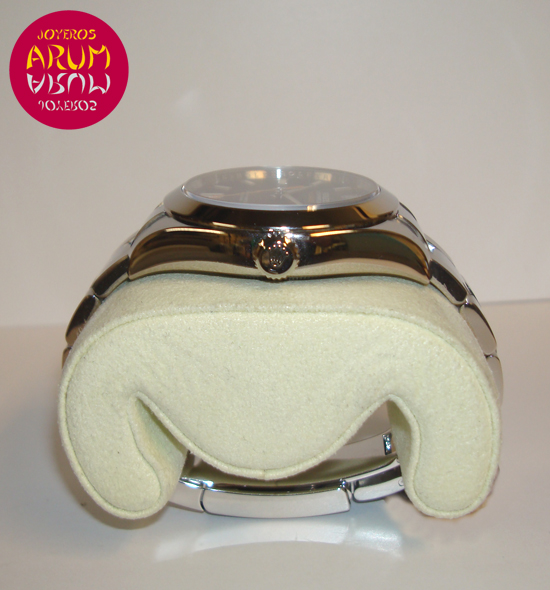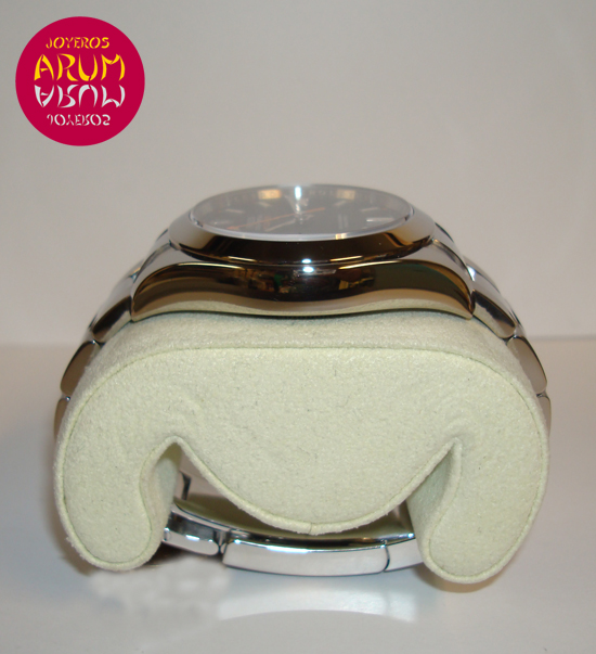 Description :steel, black dial, smooth bezel, sapphire crystal, automatic movement, center seconds, handles and luminescent dial, screw crown, diameter 40 mm, waterproof 100 meters, steel bracelet, folding clasp, year 2008.