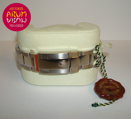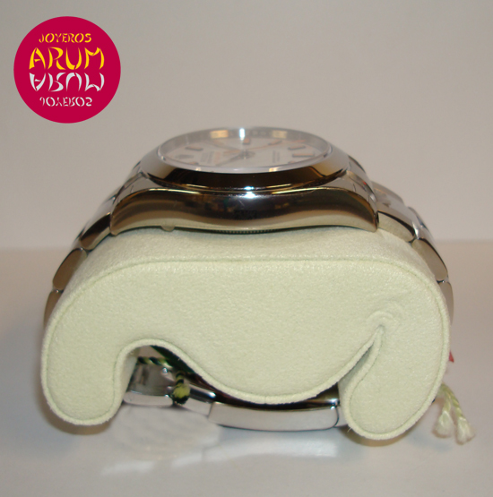 Description :steel, white dial, smooth bezel, sapphire crystal, automatic movement, center seconds, handles and luminescent dial, screw crown, diameter 40 mm, waterproof 100 meters, steel bracelet, folding clasp.