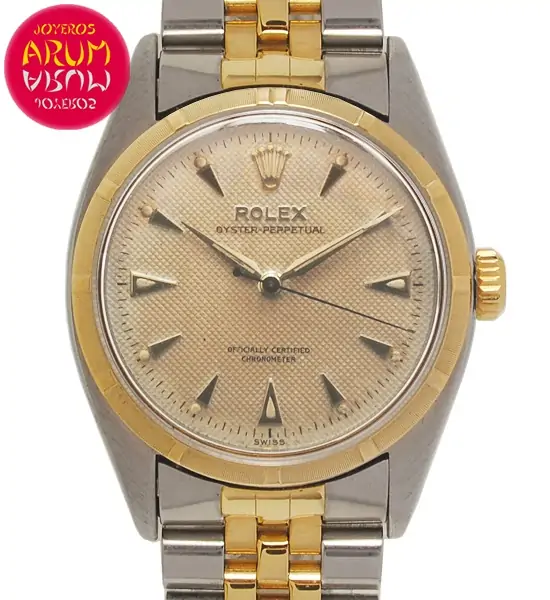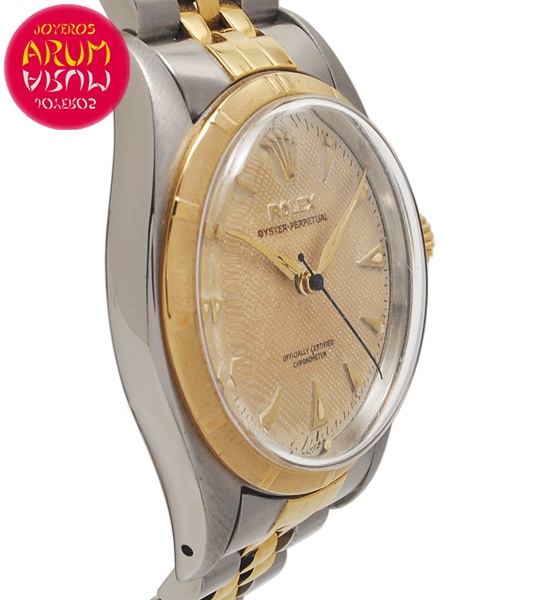 Otras especificaciones :esfera guilloseada, segundero central, corona a rosca. Año 1937.