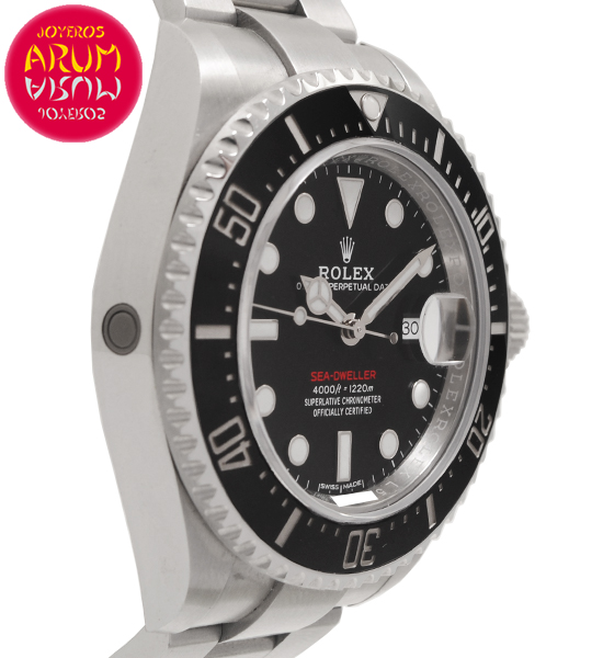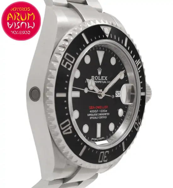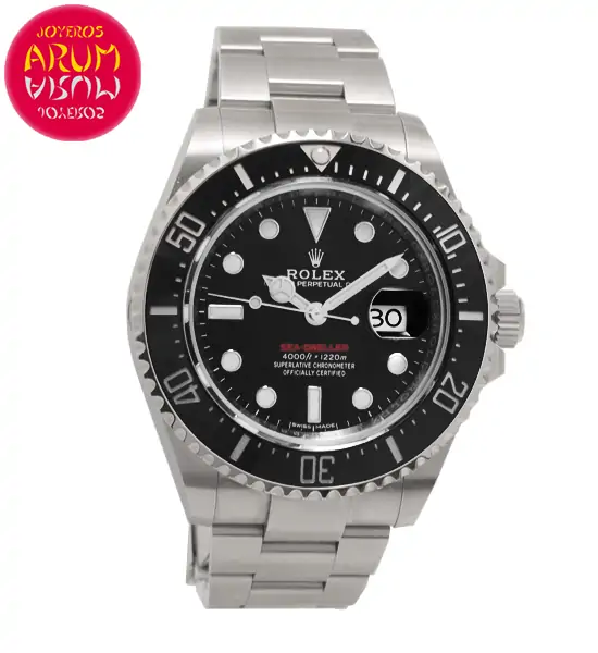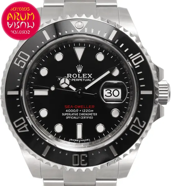 Other specifications :edition 50th anniversary Sea-Dweller, printed in red letters, cyclops magnification lens date at three, central seconds, luminous marks, safety ring with serial number, helium valve, ceramic bezel, screw crown. Year 2018.