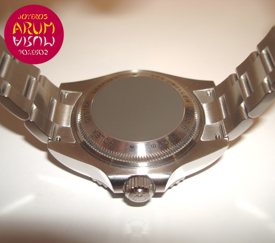 Description :steel, black dial, ceramic bezel with 120 positions and graduation of 60 minutes to read the immersion time, sapphire crystal, automatic movement, caliber 3135, 31 jewels, gas valve, steel ring with nitrogen, center seconds, luminescent handles and blue dial, date at three, triplock screw crown, diameter 44 mm, water resistant 3900 meters, back cover made ​​of titanium, steel strap, steel folding clasp, year 2012.