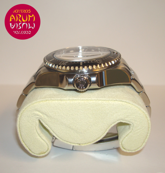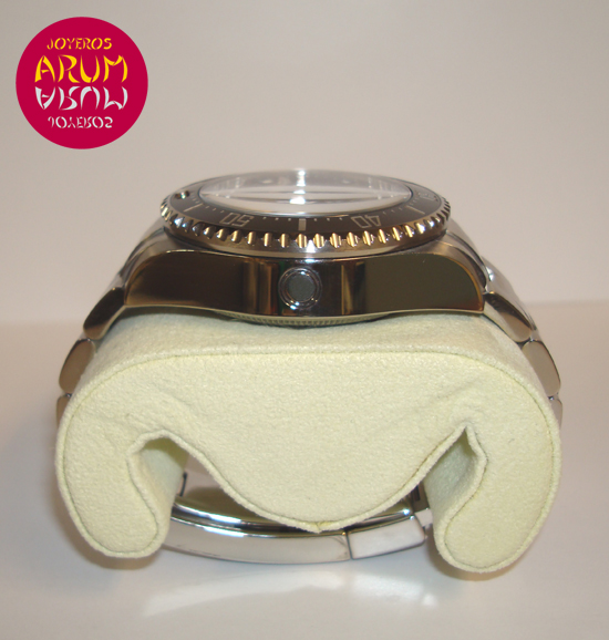 Description :steel, black dial, ceramic bezel with 120 positions and graduation of 60 minutes to read the immersion time, sapphire crystal, automatic movement, caliber 3135, 31 jewels, gas valve, steel ring with nitrogen, center seconds, luminescent handles and blue dial, date at three, screw crown, diameter 43 mm, water resistan 3900 meters, back cover made of titanium, steel strap, steel folding clasp, year 2008.