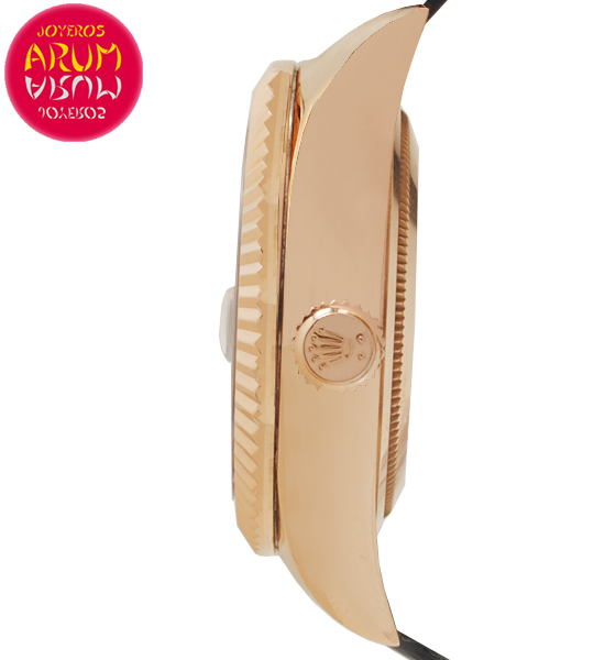 Other specifications :calibre Rolex 9001, power reserve 72 horas, annual calendar, GMT (second time zone), fluted bezel rotating to left for use the functions, date at three, month with white mark above every number, central seconds, safety ring with serial number, luminiscence marks, screw crown, 18K gold folding clasp.
