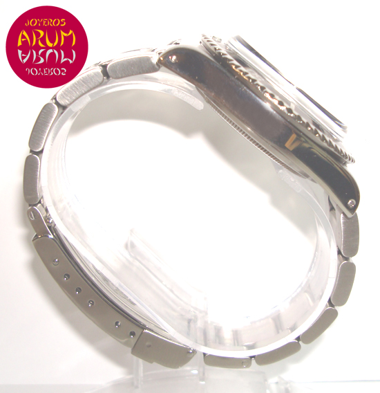 Description :steel, black dial, rotating bezel, plastic glass, automatic movement, center seconds, luminescent handles and dial, date at three, screw crown, diameter 40 mm, waterproof 200 meters, steel bracelet, steel folding clasp, year 1978.