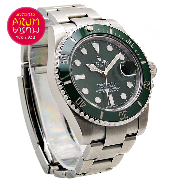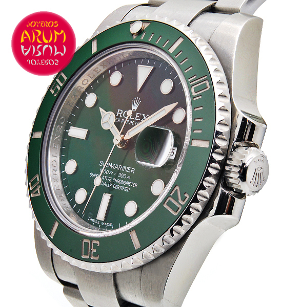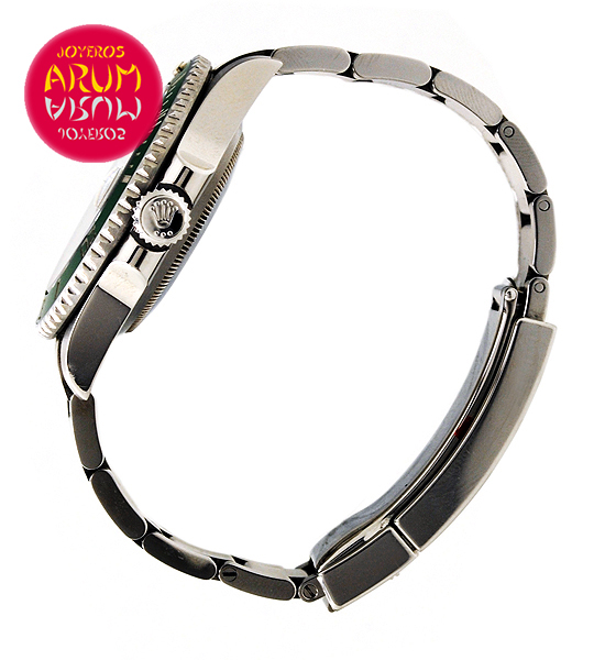Other specifications :ceramic green bezel, date at three, central seconds, luminiscence, screw crown, safety ring, year 2013.