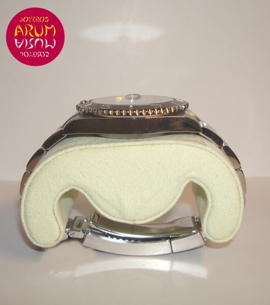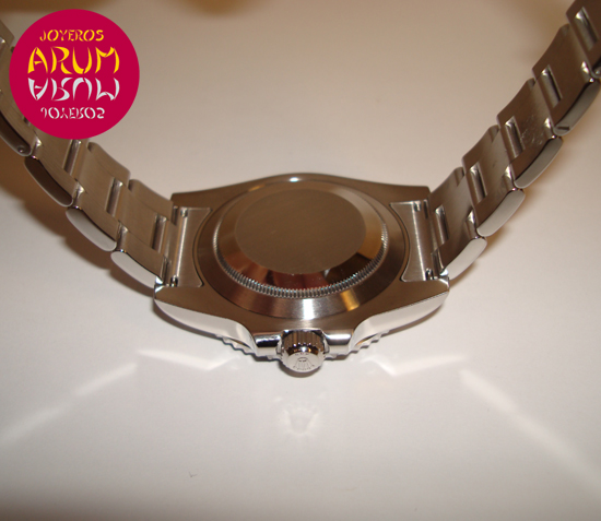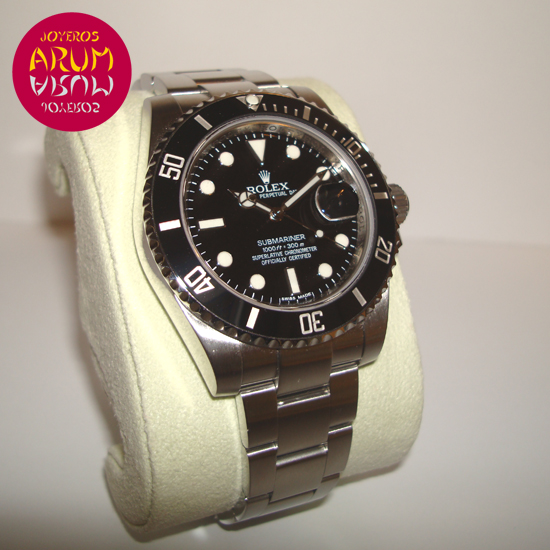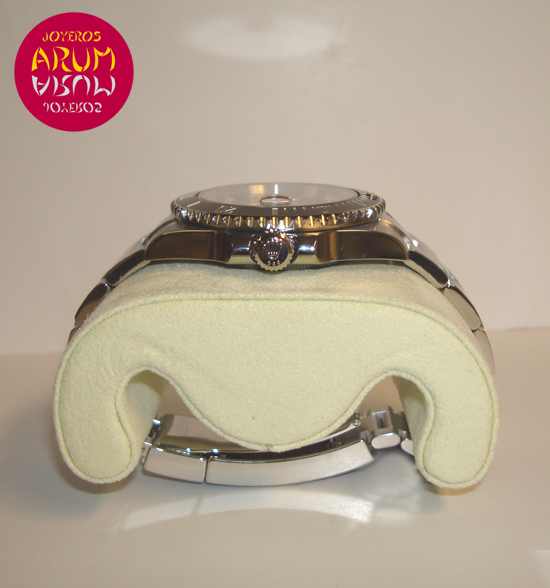 Description :steel, black dial, sapphire crystal, automatic movement, ceramic rotating bezel, center seconds, luminescent handles and dial, date at three, screw crown, diameter 40 mm, waterproof 300 meters, steel bracelet, steel folding clasp, year 2011.