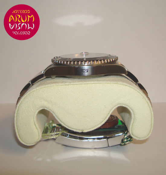 Description :steel, black dial, sapphire crystal, automatic movement, ceramic rotating bezel, center seconds, luminescent handles and dial, date at three, screw crown, diameter 40 mm, waterproof 300 meters, steel bracelet, steel folding clasp.