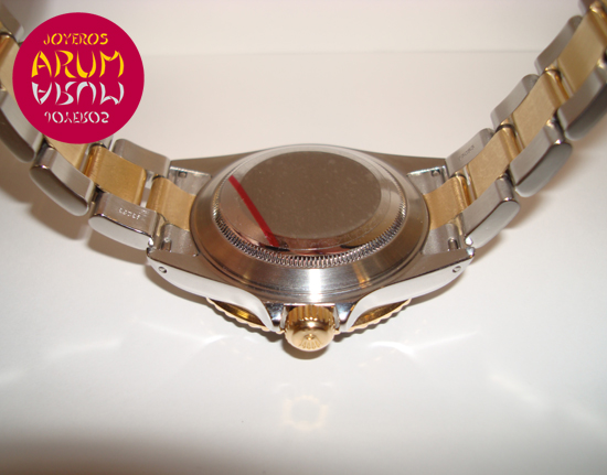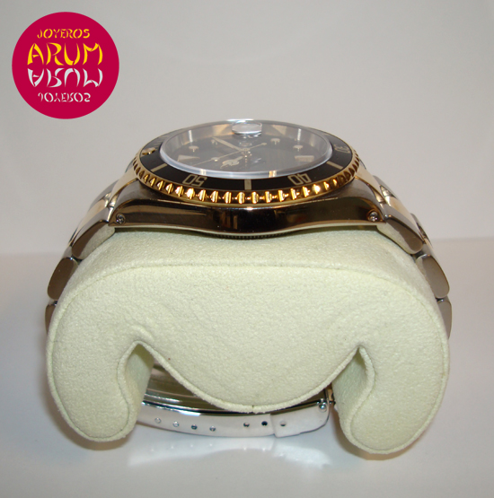 Description :steel and yellow gold, black dial, unidirectional rotating bezel, sapphire crystal, automatic movement, center seconds, luminescent dial and handles, date with magnifying at three, screw crown, diameter 40 mm, water resistant 300 meters, steel and yellow gold strap, folding clasp, year 1987.