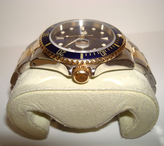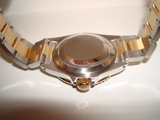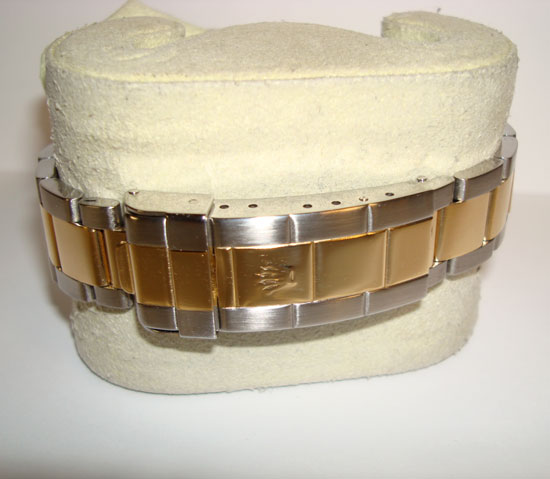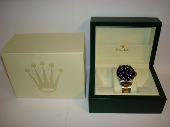 Description :steel and yellow gold, bezel and blue dial, sapphire crystal, automatic movement, center seconds, luminescent dial and handles, date, magnifier date, waterproof 300 meters, diameter 40 mm, screw crown, yellow gold and steel strap, folding clasp oyster.