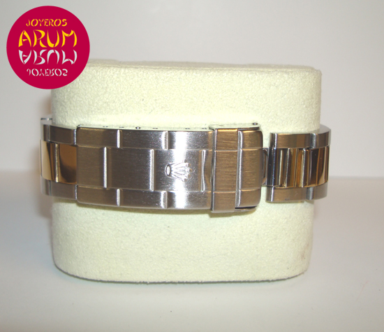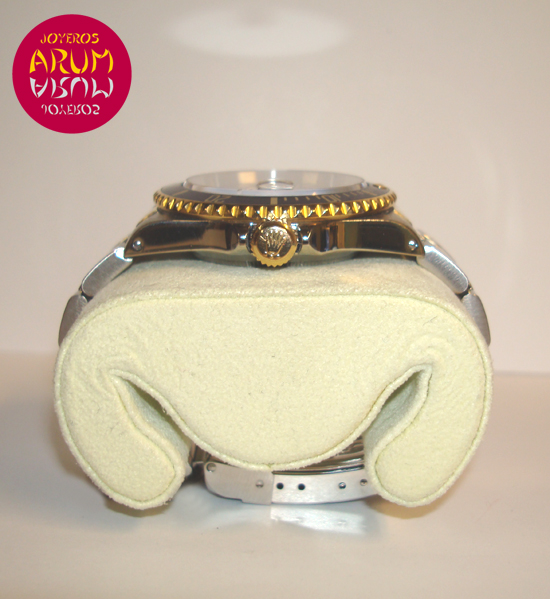 Description :steel and yellow gold, blue dial, rotating bezel, sapphire crystal, automatic movement, center seconds, handles and luminescent dial, date with magnifier at three, screw crown, diameter 40 mm, water resistant 300 meters, steel and yellow gold strap, folding clasp.